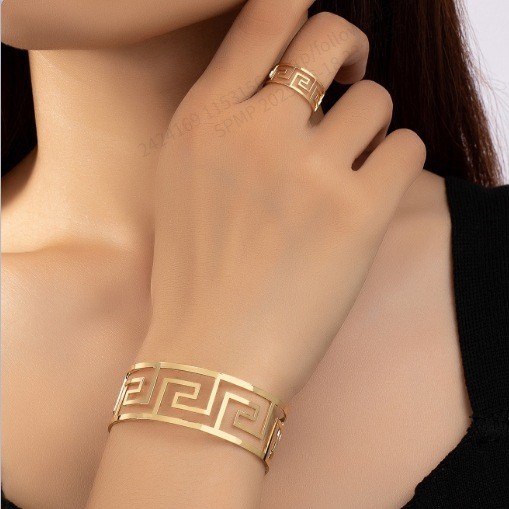 Cross-Border European and American Hot-Selling Geometric Hollow Great Wall Pattern Bracelet and Necklace Set Simple and Popular