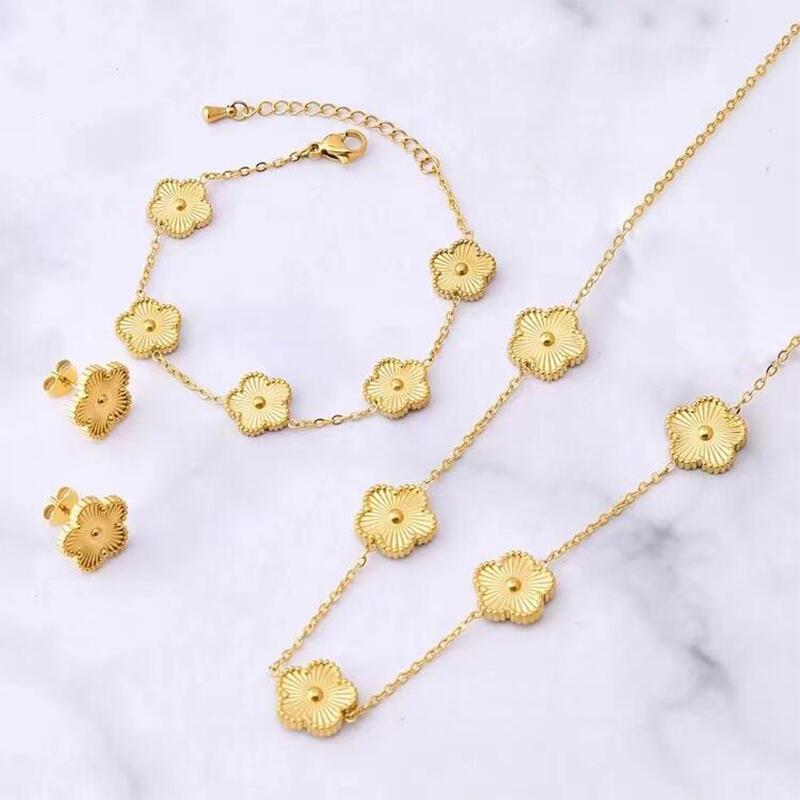 Cross-border 13MM Five-leaf Clover Bracelet Necklace suit Double-sided Laser Bracelet Titanium Steel Color-retaining Four-leaf Clover Bracelet