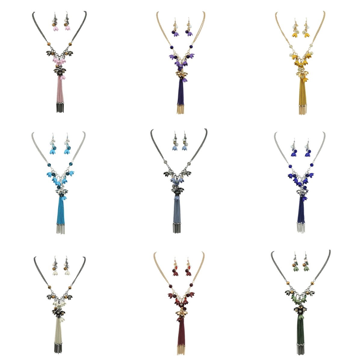 European and American cross-border fashion all-match fresh small iron flower tassel pendant necklace earrings suit Amazon hot sale