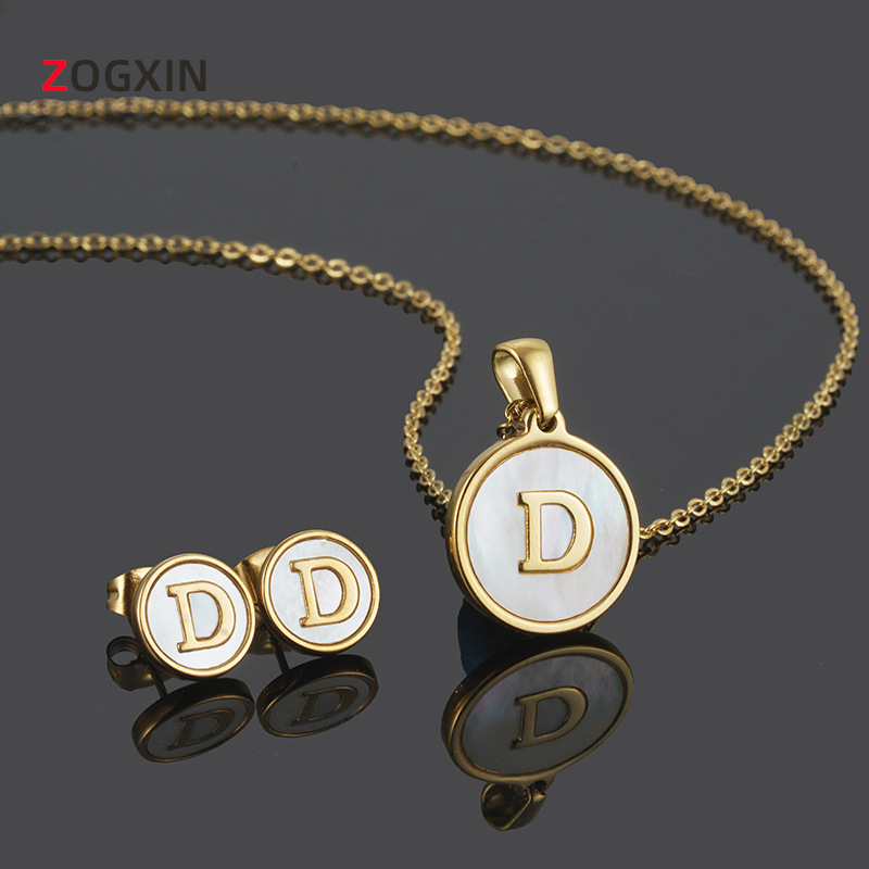 Europe and the United States 18K stainless steel shell letter necklace suit cross-border titanium steel round 26 English letter necklace women