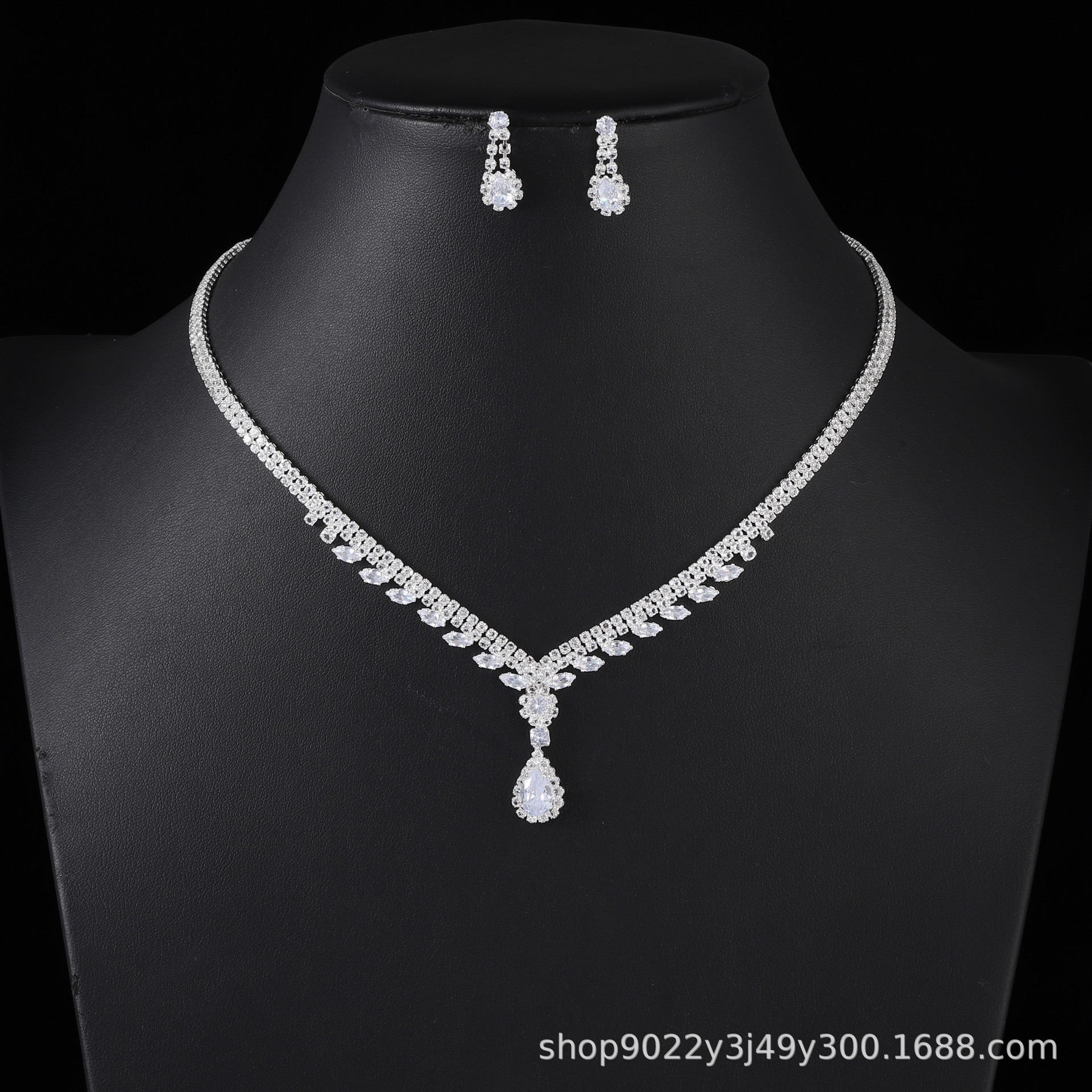 Rhinestone zircon necklace earrings suit full diamond bridal wedding accessories tassel jewelry European and American cross-border supply wholesale