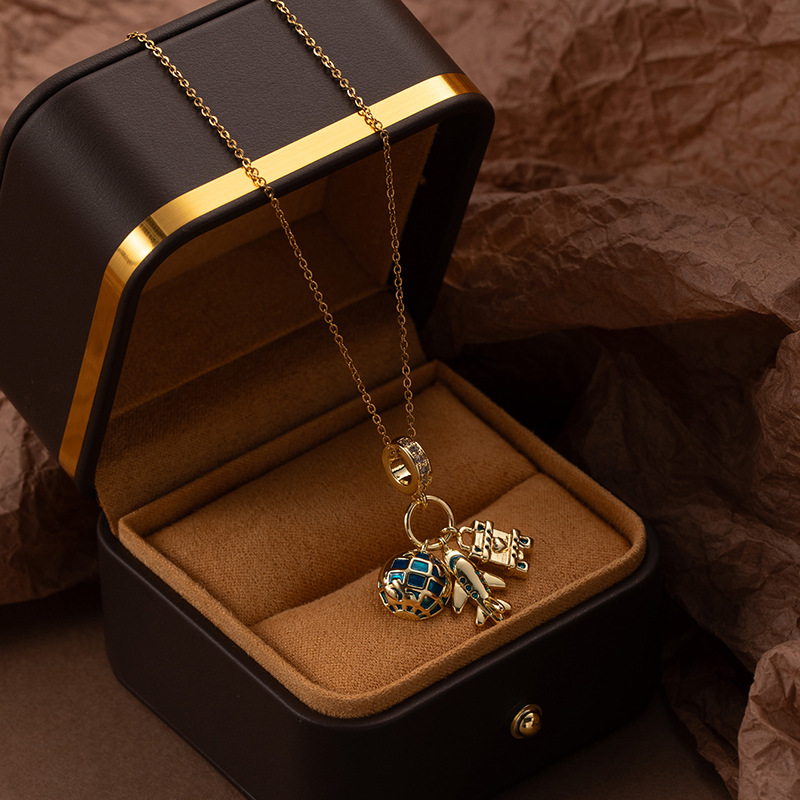 Cross-Border European and American Airplane Travel Diary Three-Piece Set Micro-Paved Zircon Necklace Women's Fashion Versatile High-End Clavicle Chain