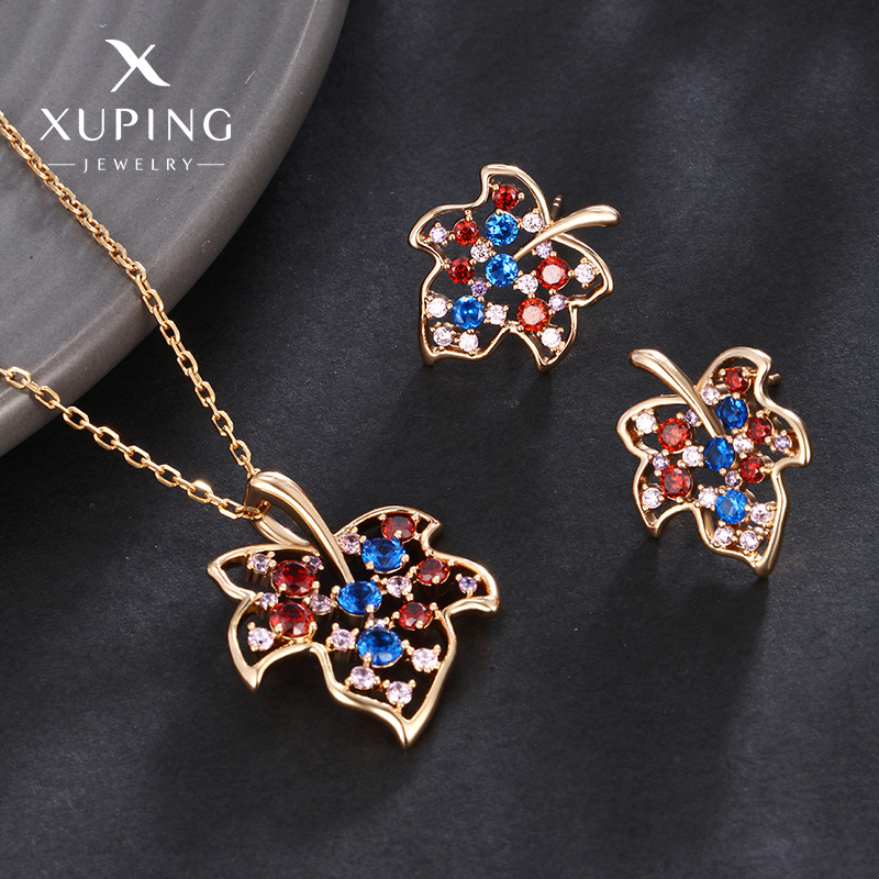 Xuping Colorful Artificial Gemstone Maple Leaf Earrings Pendant Necklace Women's Design Sense Light Luxury Jewelry Set