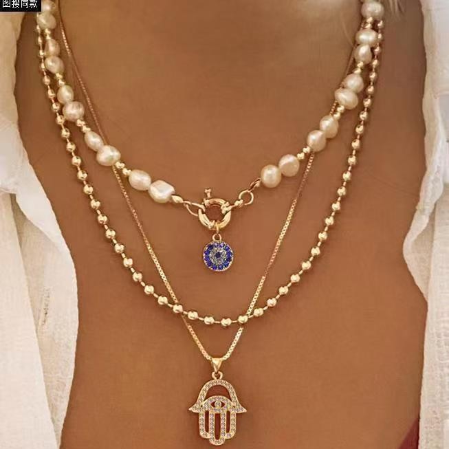 [Event] Cross-Border Women's Fashion Trendy Necklace Alloy Diamond Multi-Layer Women's Pearl Pendant Chain Set