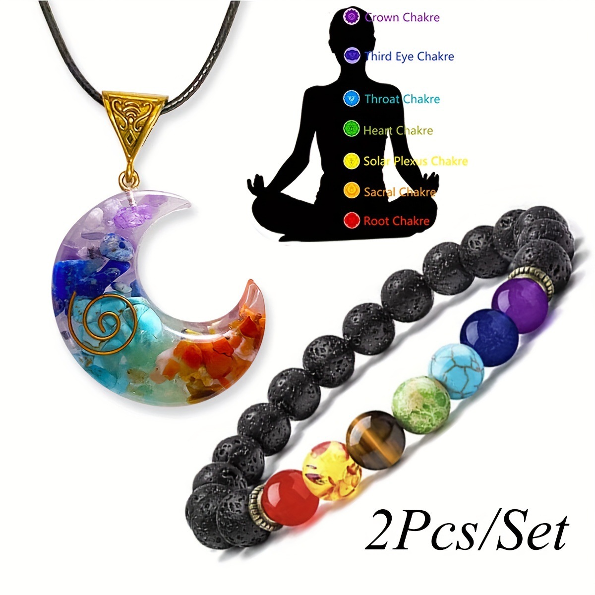 Natural crystal gravel resin colorful moon pendant necklace yoga volcanic stone bracelet suit spirit pendant