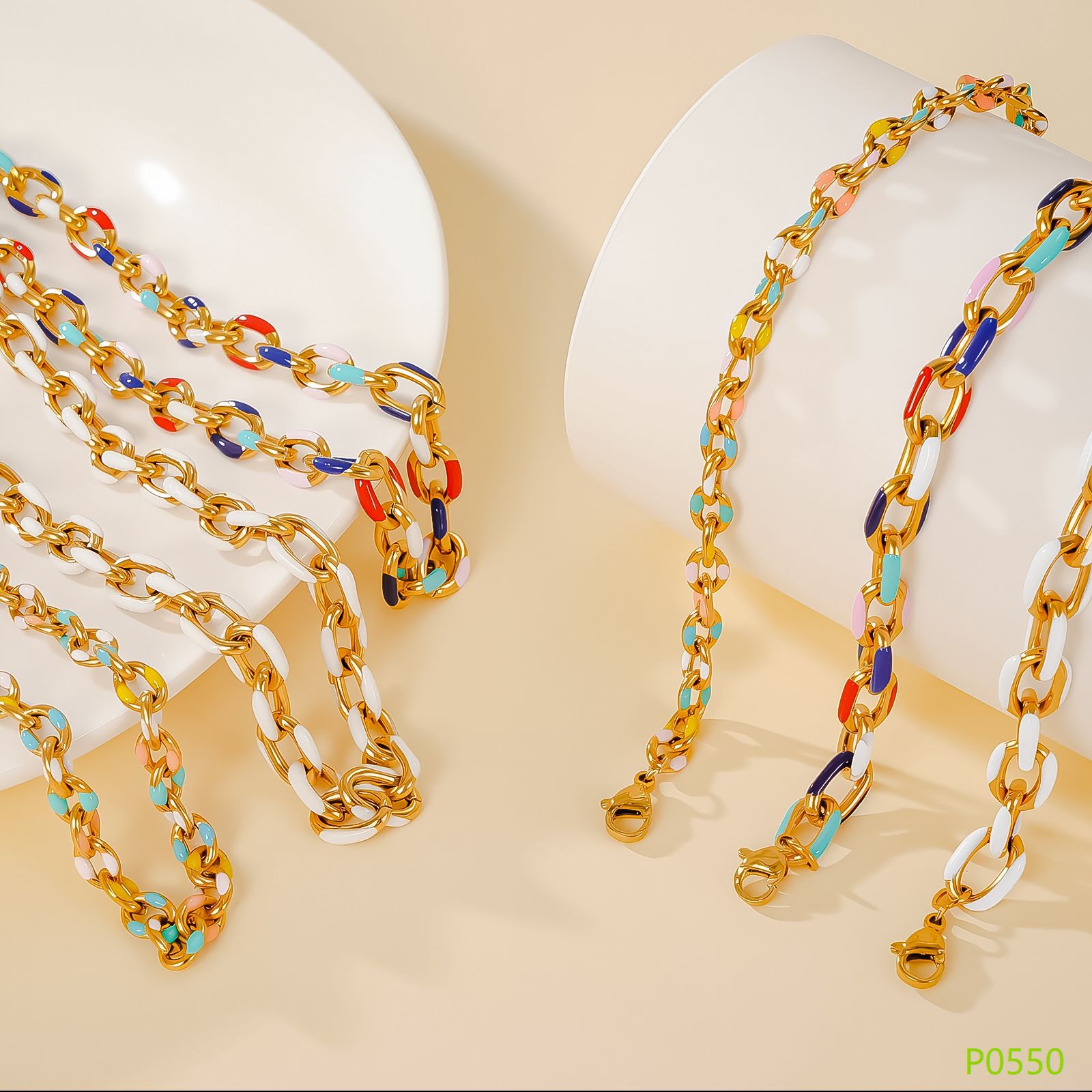 European and American Hot-Selling Oil-Dropping Bracelet and Necklace Set Two-Piece Set Japanese and Korean Titanium Steel Thick Chain Jewelry Set Versatile for Women