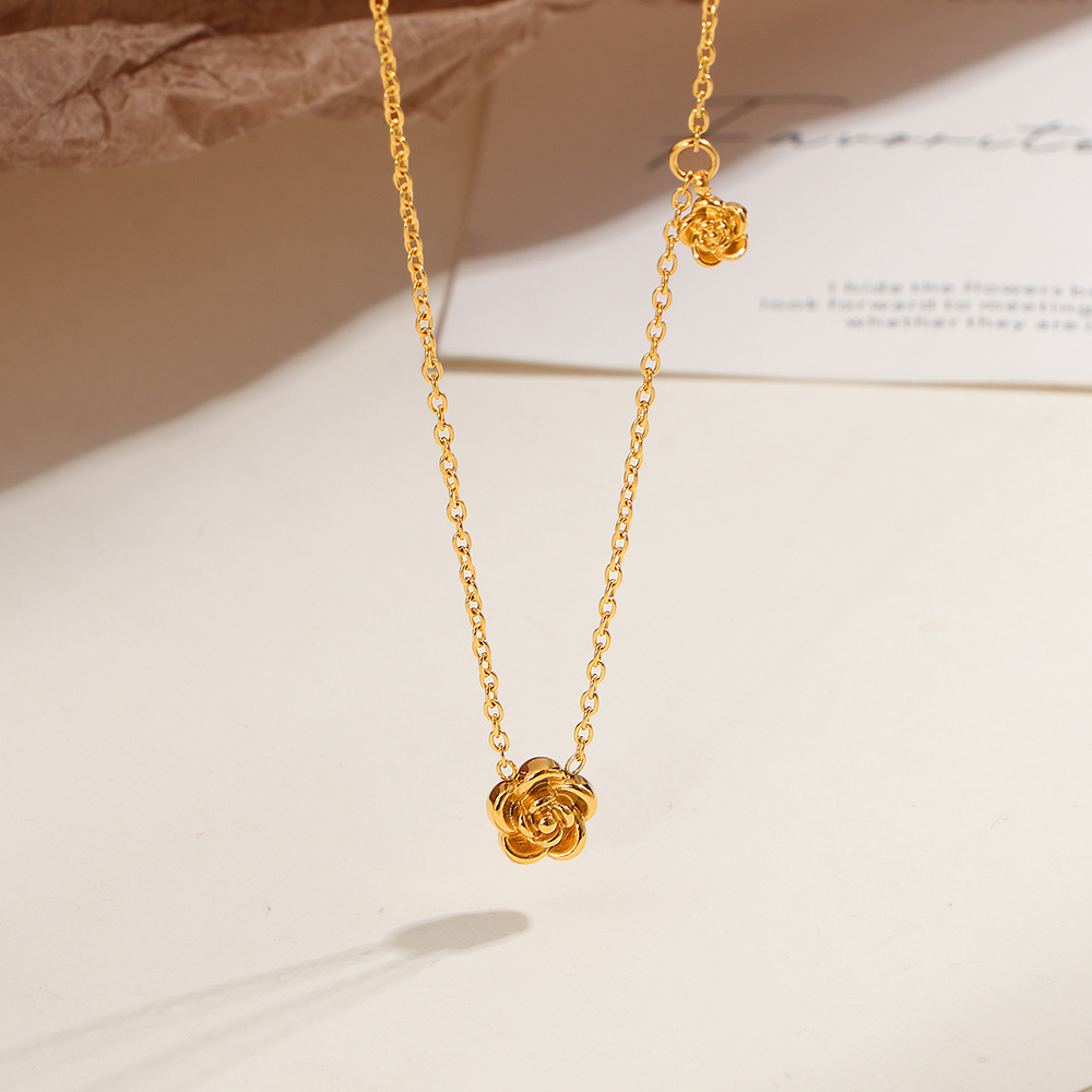 Korean New Ins Style Fashionable Simple Camellia Bracelet Niche High-End Titanium Steel Gold-Plated Clavicle Chain Set