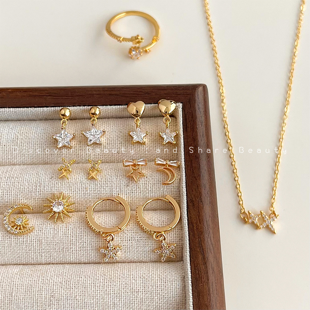 Simple Small Micro-inlaid Zircon Star Earrings Female Niche Fashion Zircon Jewelry suit Light Luxury High-end Necklace