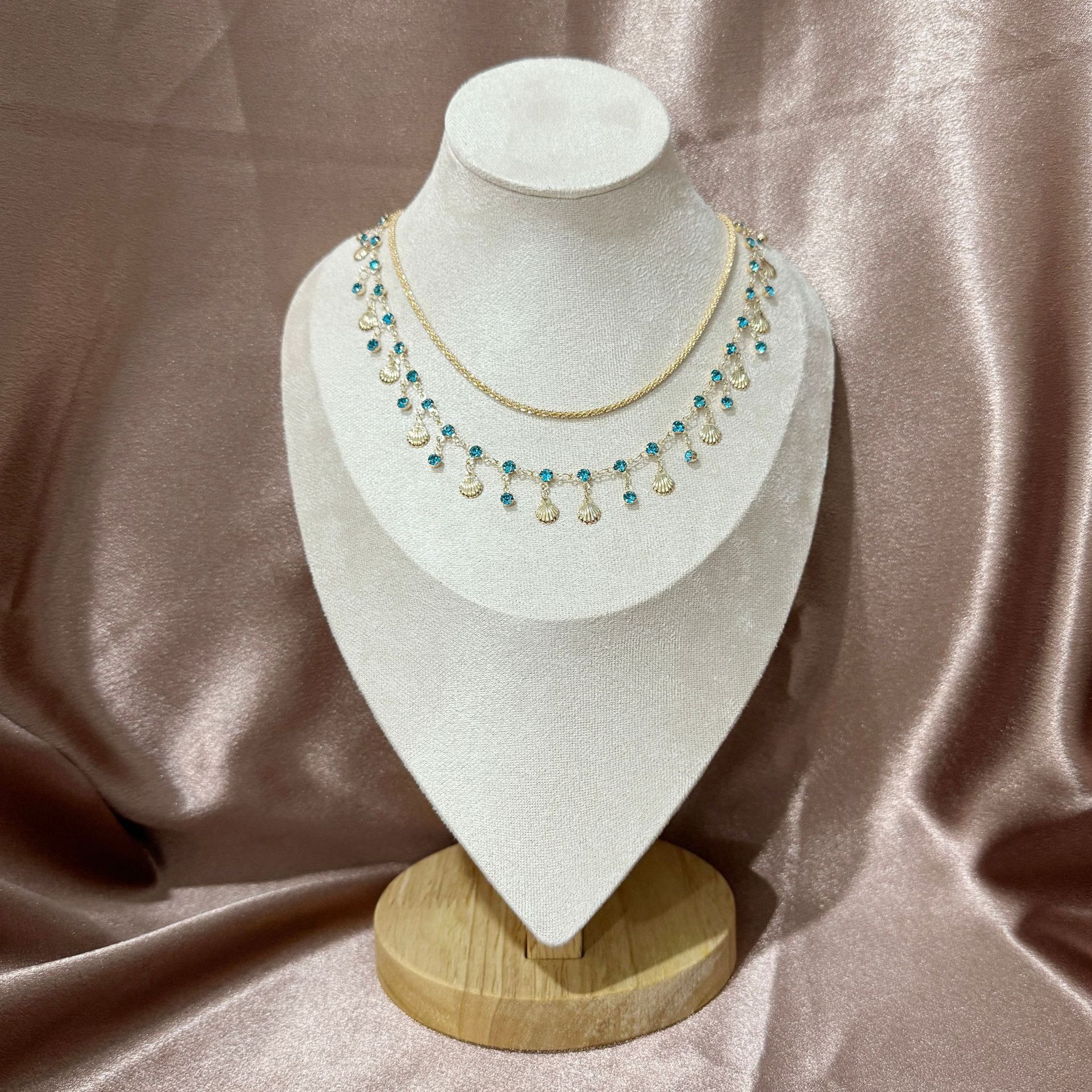 Cross-Border New Style Bohemian Mermaid Princess Blue Diamond Shell Tassel Necklace Bracelet Accessible Luxury Shiny Set