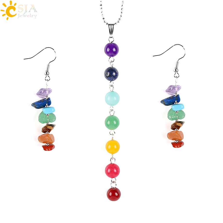 European and American foreign trade jewelry explosive colorful stone pendant natural amethyst semi-precious stone necklace set