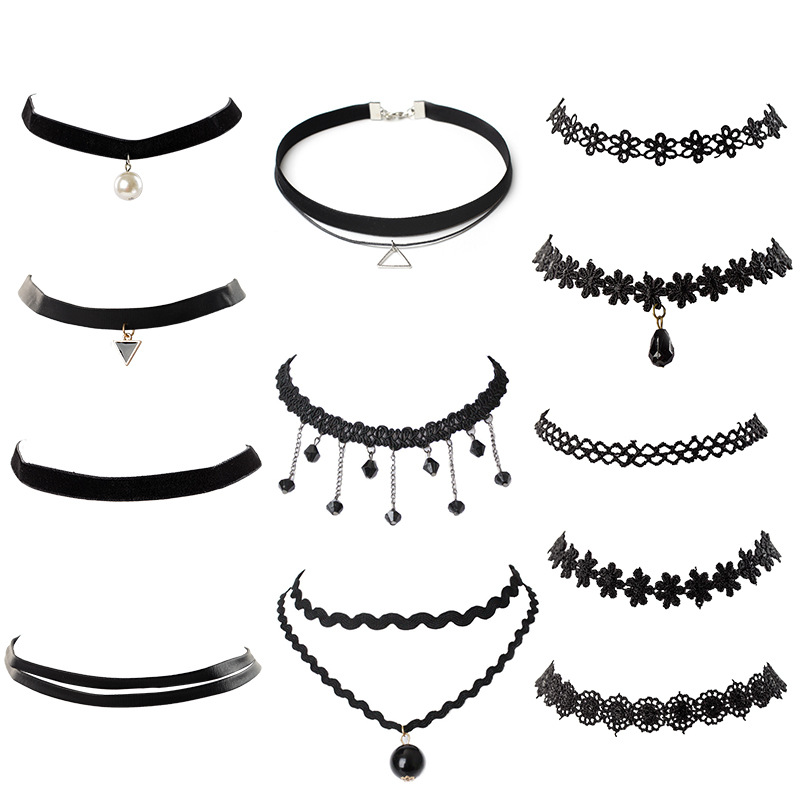 Korean style simple velvet belt combination suit necklace Gothic tassel choker collar fashion lace necklace