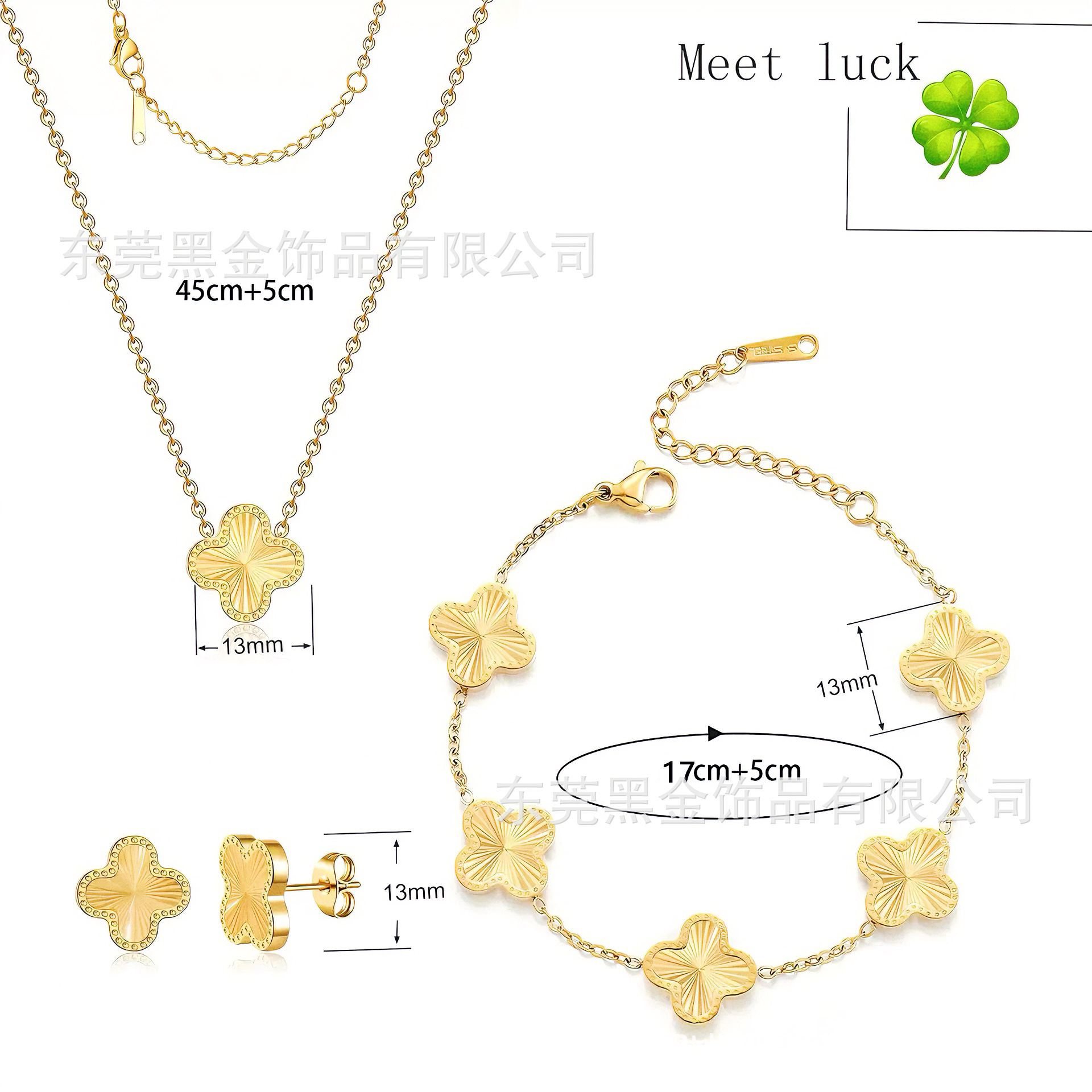 Amazon BS titanium steel golden batch flower flat with dot four-leaf clover bracelet necklace earrings four-leaf clover suit wholesale