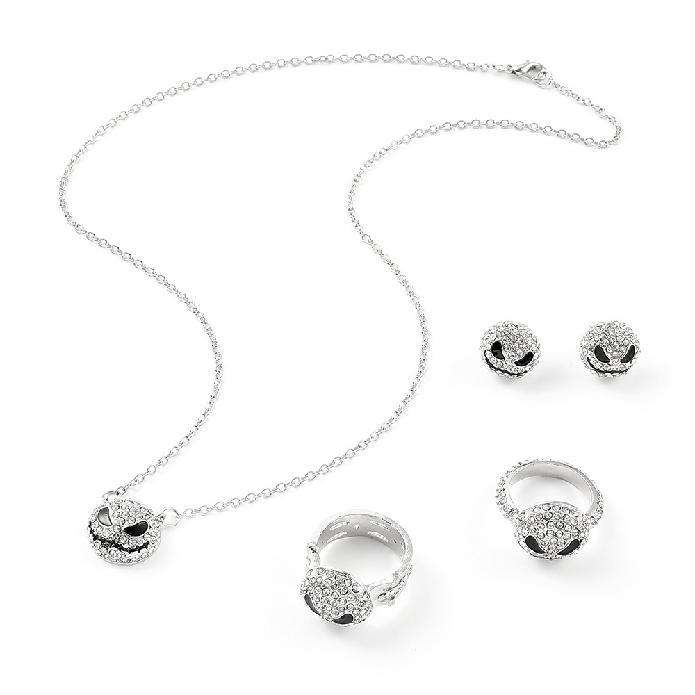 Amazon New Punk Skull Necklace Pendant Skull Ring Earrings Fashion Jewelry Set Wholesale