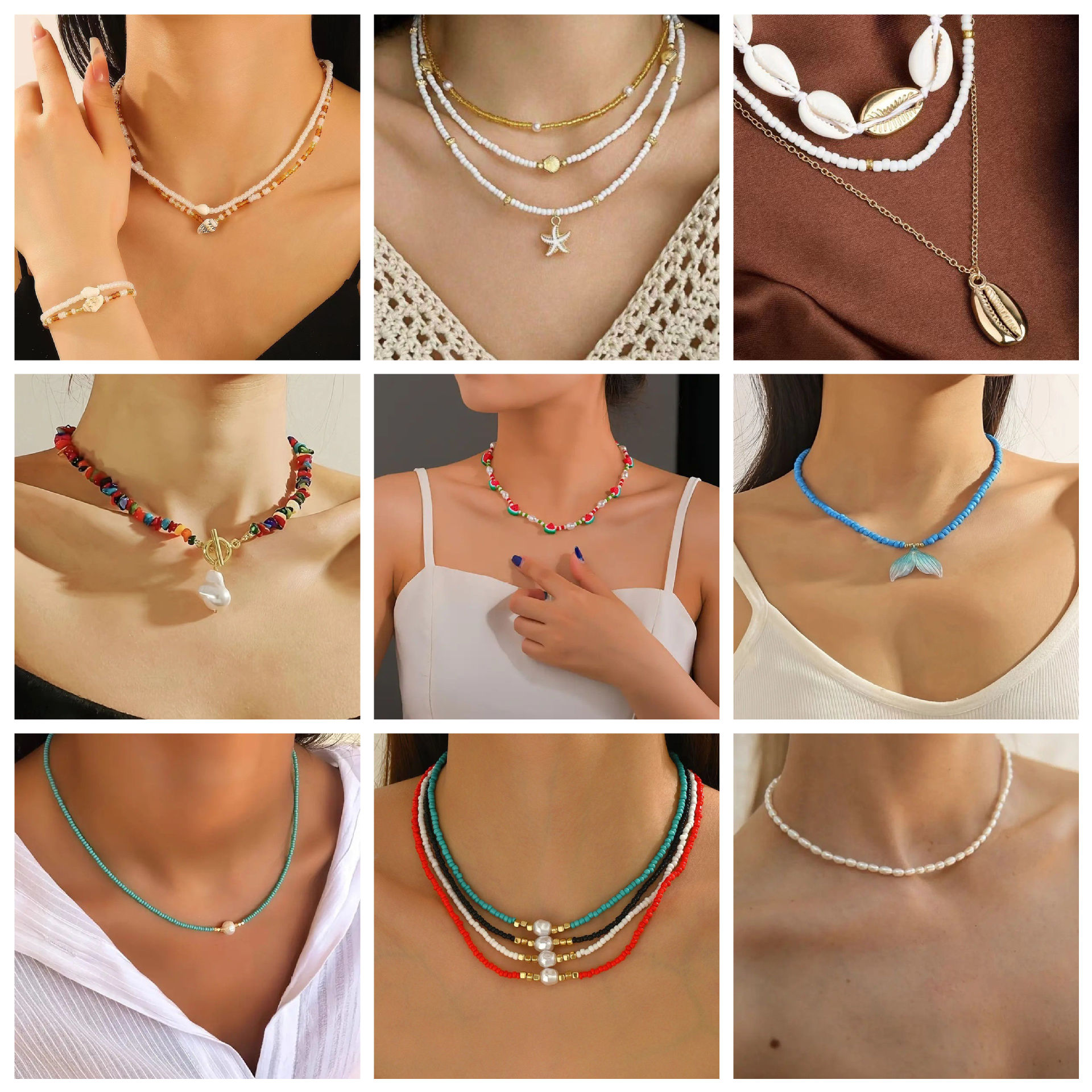 Cross-Border New Bohemian Style Multi-Layer Shell Necklace Women's Fashion Rice Bead Necklace Clavicle Chain Set Wholesale