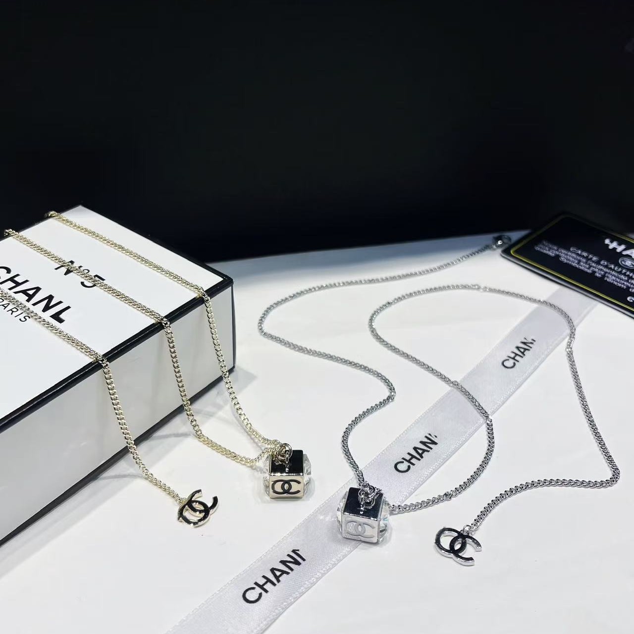 Xiaoxiangfeng's New Small Sugar Cube Letter Necklace, Fashionable Square Diamond Letter Drop Glaze Earrings and Earrings Series Set