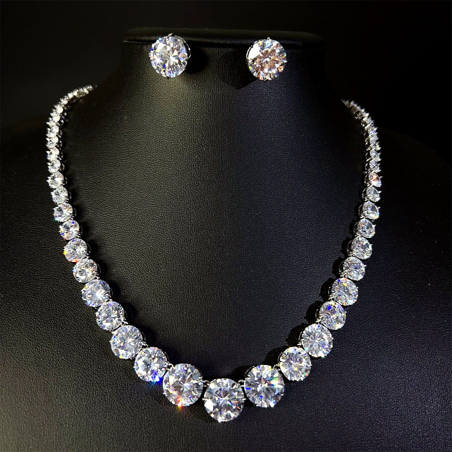 Earrings, Luxury Celebrity Banquet, High-End Super Flash Necklace, Gradient Size Zircon Wedding Bride Versatile Jewelry Set