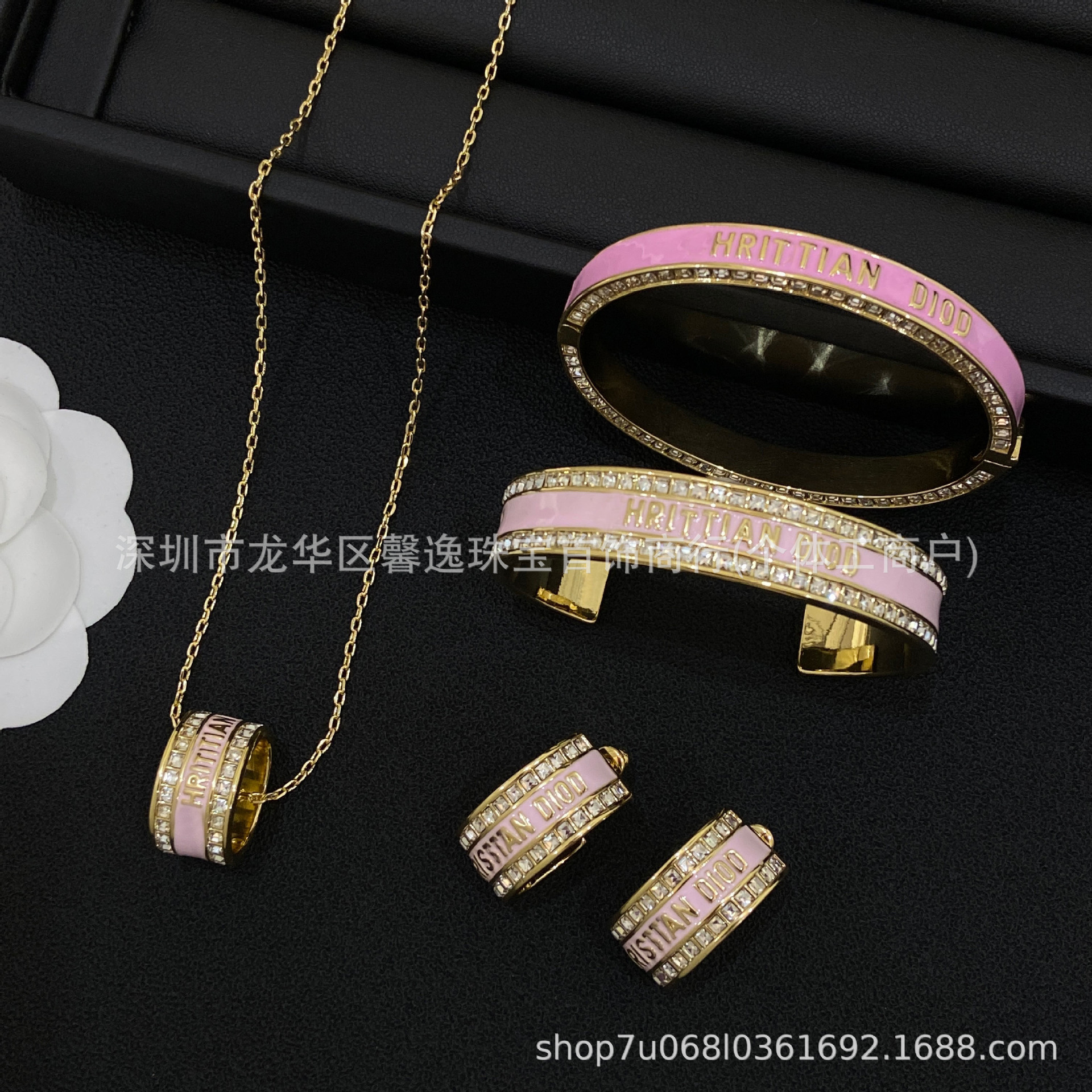 New Letter Pink Necklace Set for Women, French-Style Socialite Collarbone Chain with Double-Row Diamonds, Unique Retro Fashion Trend