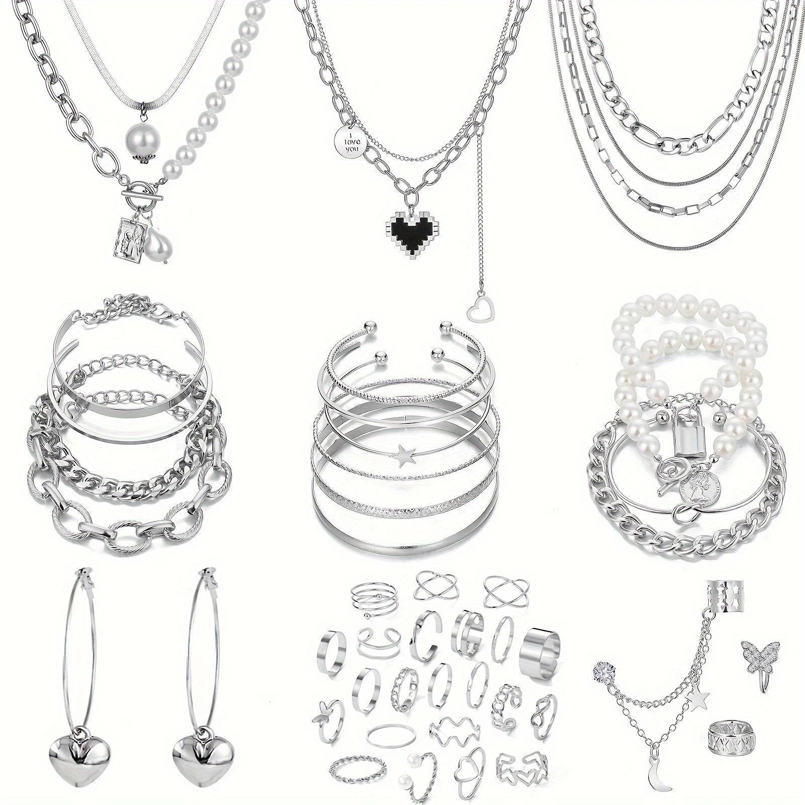 44-Piece Cross-Border Women's Fashion Simple Jewelry Set Butterfly Pearl Multi-Layer Necklace Ring Earrings Bracelet for Women