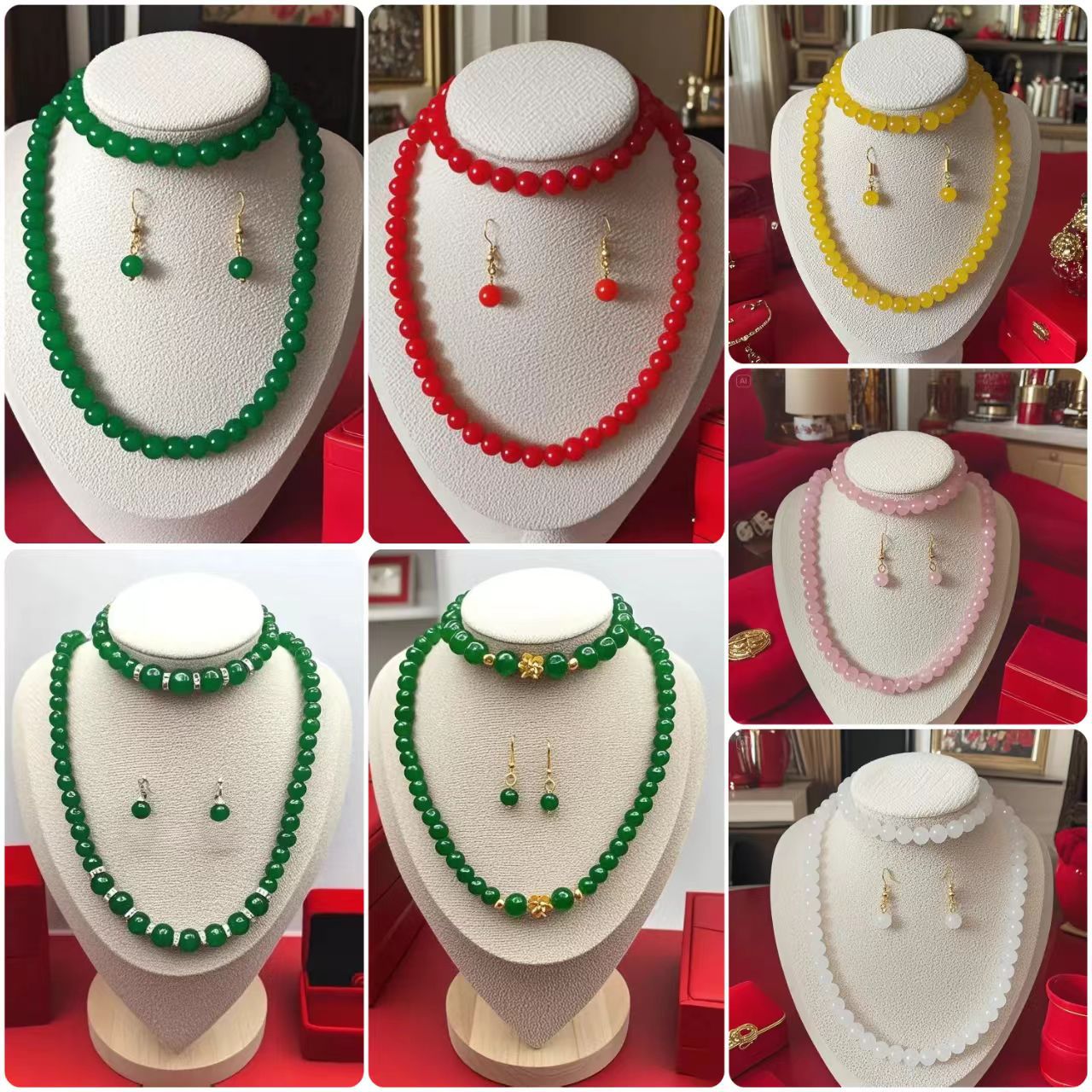 Mother's Day imitation green chalcedony necklace bracelet earrings three-piece lotus rhinestone accessories mother chain jewelry wholesale