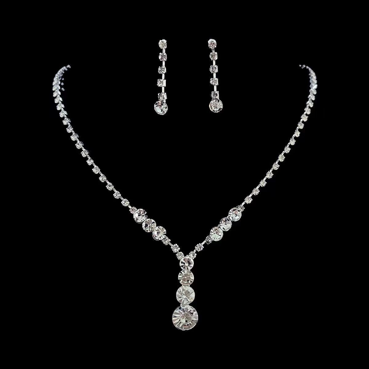 Cross-Border E-Commerce Hot Selling European and American Fashion Crystal Necklace Earrings Set Bridal Wedding Jewelry Ladies Jewelry Wholesale