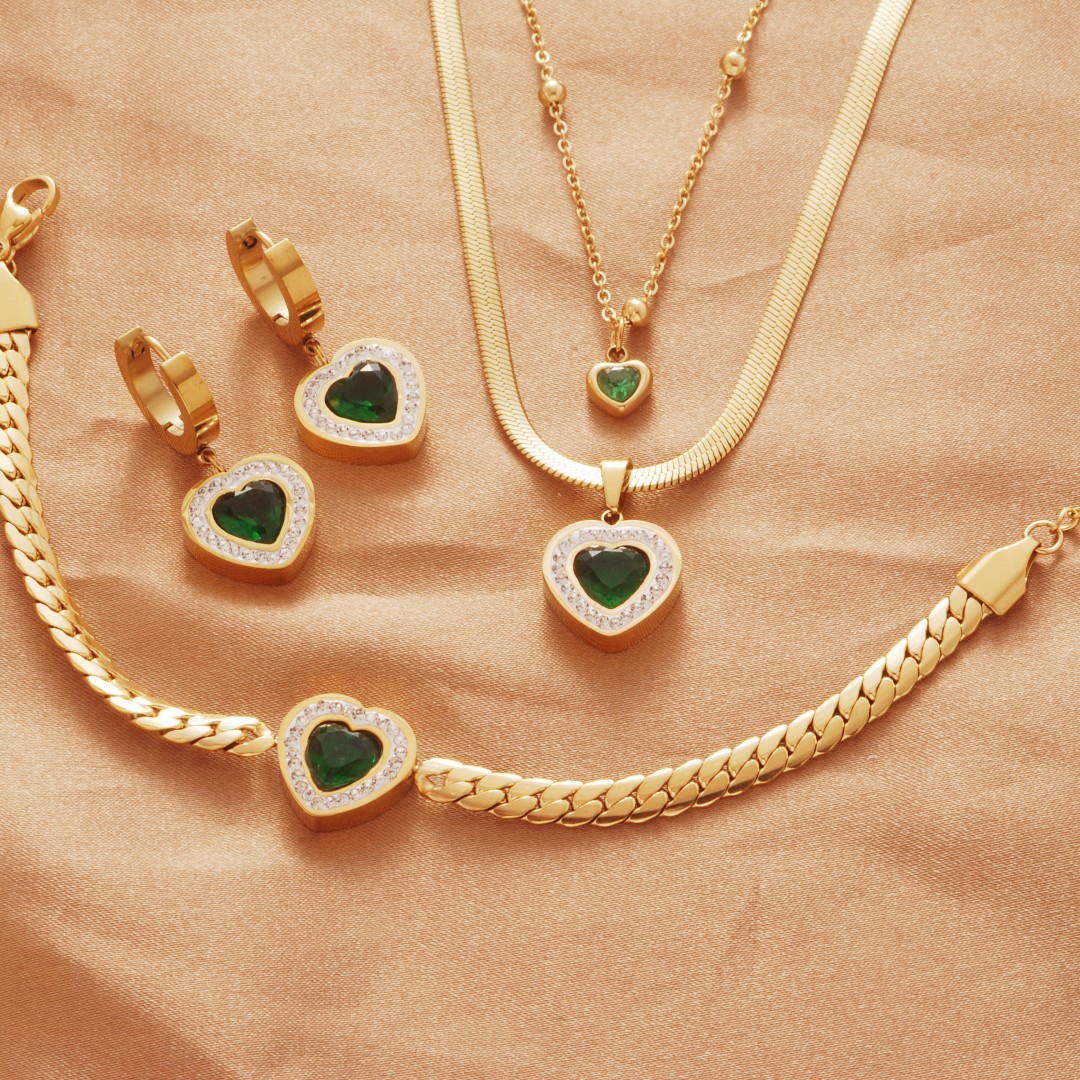 Titanium steel non-fading heart necklace earrings bracelet suit European and American personality crystal jewelry cross-border night market stall