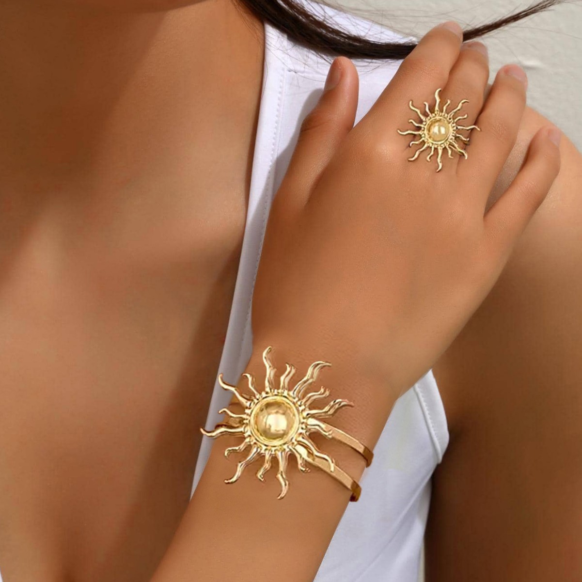 Europe and the United States cross-border supply of small personality sunflower bracelet ring suit opening adjustable hip-hop street jewelry