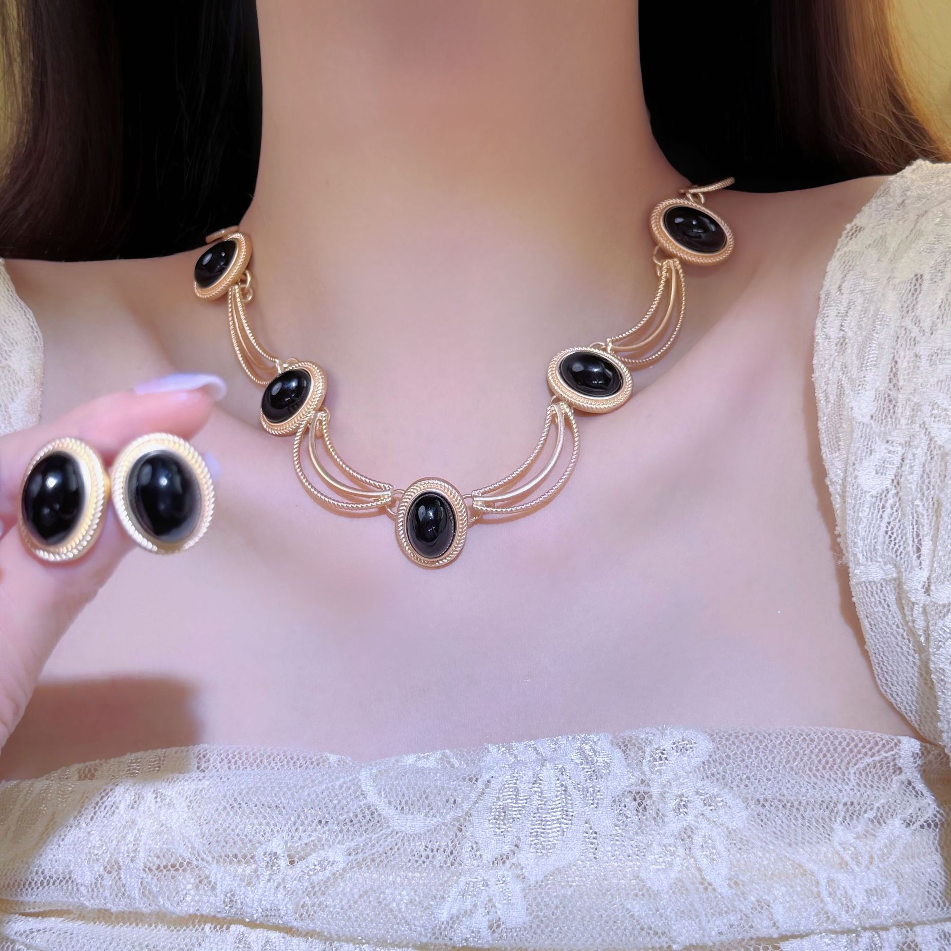 Vintage Oval Geometric Necklace with a High-End Feel, Fashionable Retro Collarbone Chain, French Niche Design Set