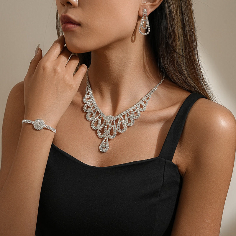 Cross-border Explosions European and American Fashion Elegant Flash Diamond Necklace Earrings suit Bridal Jewelry Women's Wedding Accessories 4867