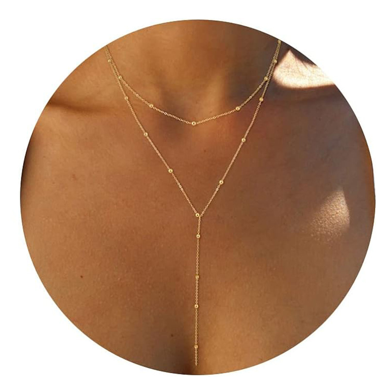 Women's New Fashion Lasso Long Necklace Stainless Steel Overlapping Y-Shaped Pendant Necklace Light Luxury Beaded Necklace suit