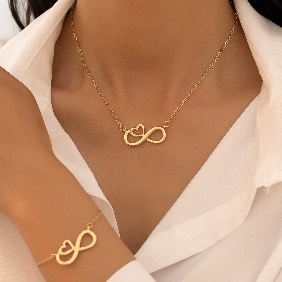 European and American Cross-border Metal Simple Design Sense 8-character Love Symbol Necklace Bracelet Valentine's Day Jewelry suit Wholesale