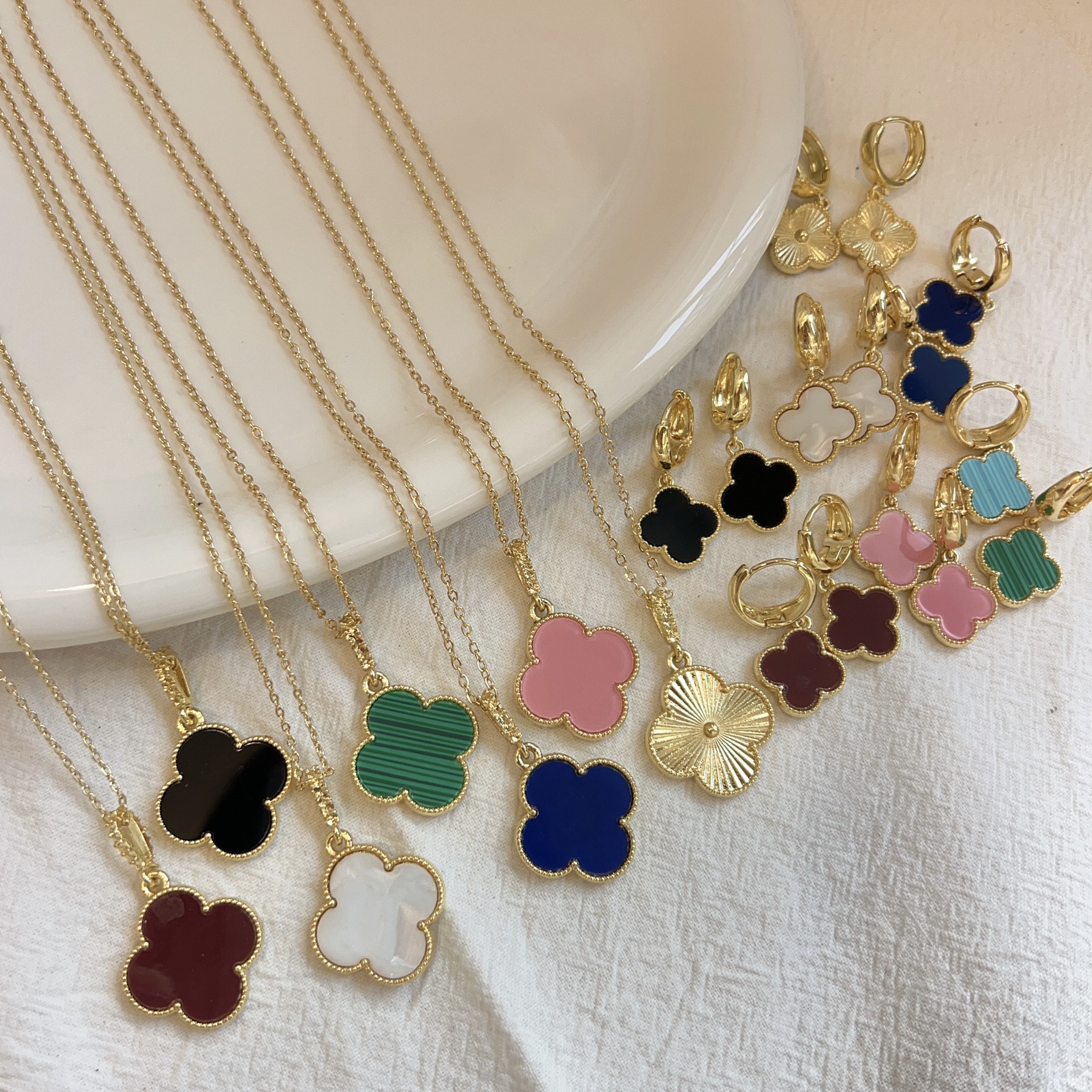 Cross-Border European and American New 18K Large Lucky Four-Leaf Clover Double-Sided Laser Necklace and Earrings Set Factory Wholesale
