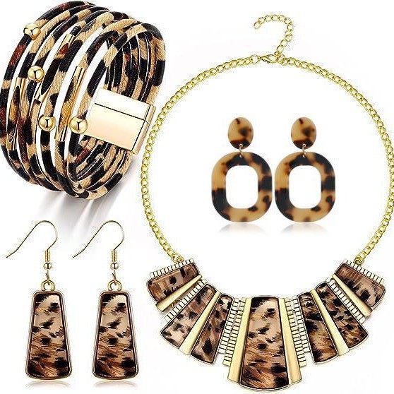 Europe and the United States cross-border hot-selling fashion simple retro accessories geometric leopard print temperament short necklace earrings suit