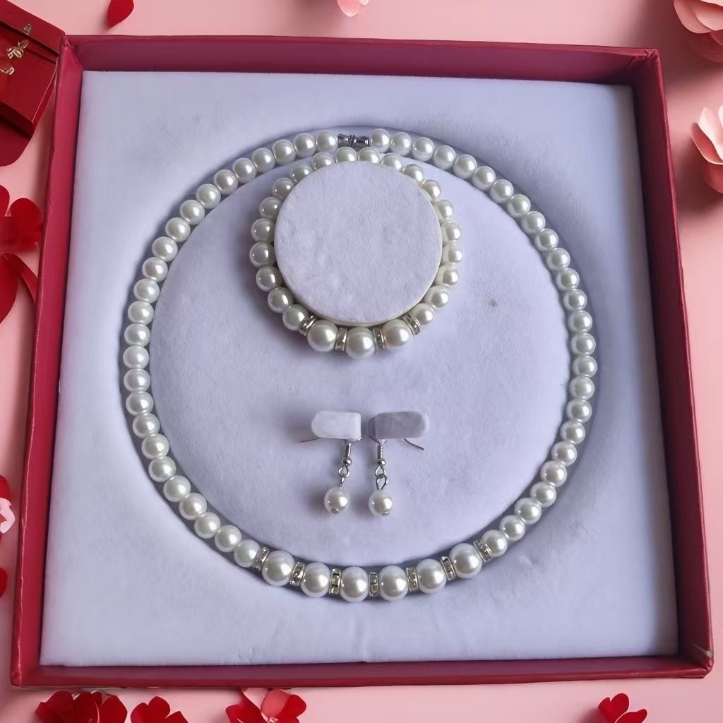 Hot-Selling Imitation Freshwater Pearl Necklace Set for Women, Light Luxury Style Gift for Mom, Three-Piece Live Broadcast Gift
