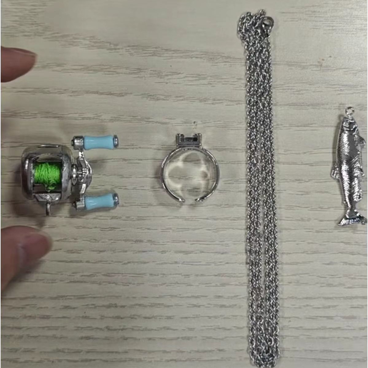 Cross-Border New Quirky Mini Lure Fishing Reel Personalized Fashion Exquisite Jewelry Set Gift Ring Necklace