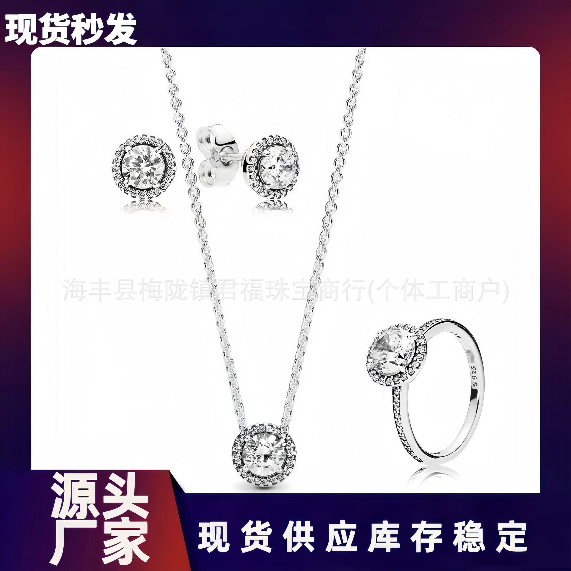 Panjia White Copper Shining Round Halo Chain Necklace New Necklace Earrings Ring suit All-match Wholesale