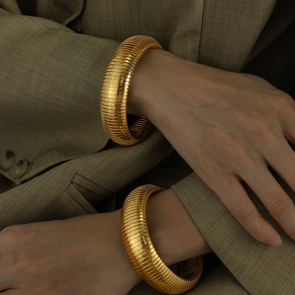20mm European and American exaggerated retro thread elastic bracelet necklace suit personality trendy titanium steel design cross-border accessories
