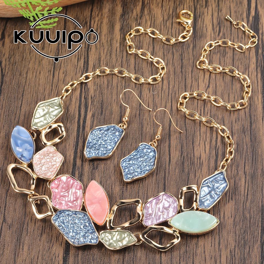 Cross-border New Oil-dropping Color Irregular Geometric Hollow Necklace Earrings-High-grade Necklace Earrings suit