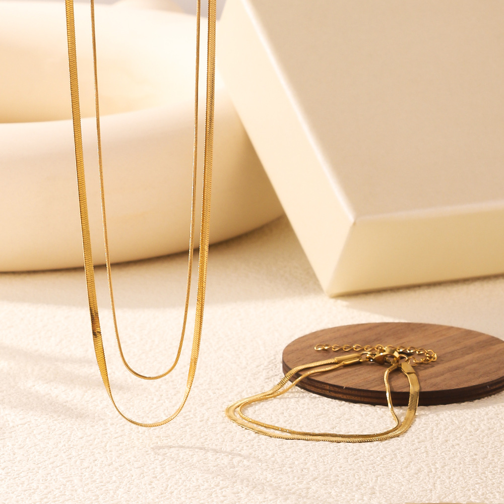Stainless Steel Women's Necklace Bracelet All-match Double Layer Wool Chain Necklace Clavicle Chain Blade Round Snake Bracelet suit