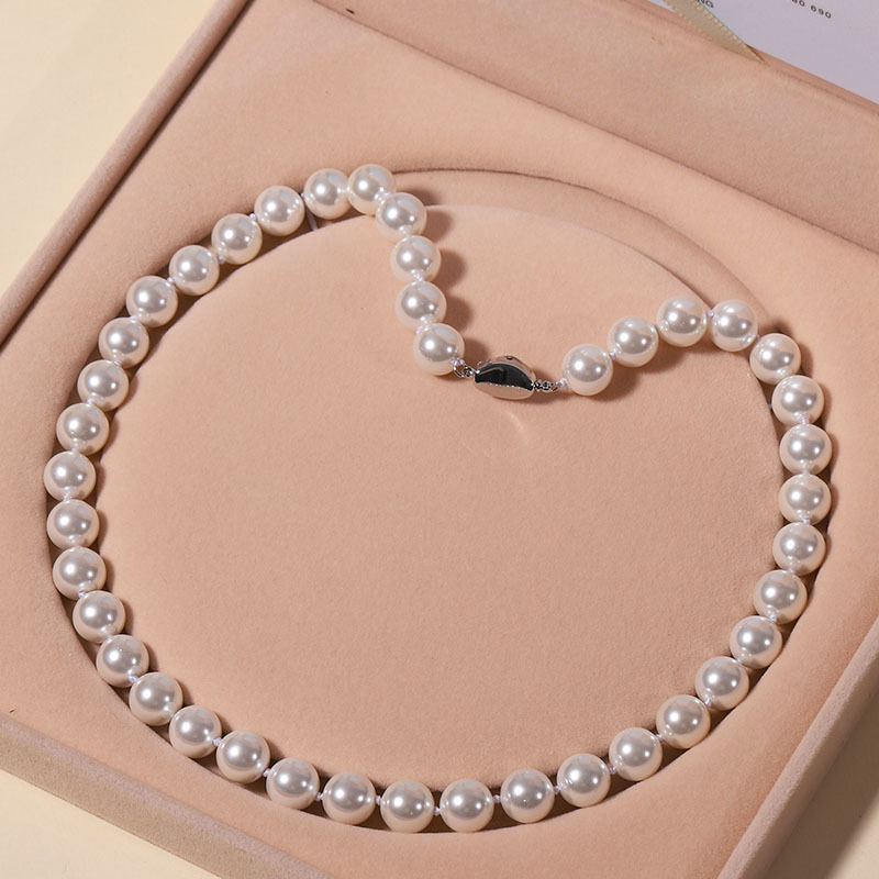 Cross-Border Deep-Sea Natural Shell Pearl Necklace, Round Shell Pearl Necklace, Women's Set, Gift for Mom on Mother's Day