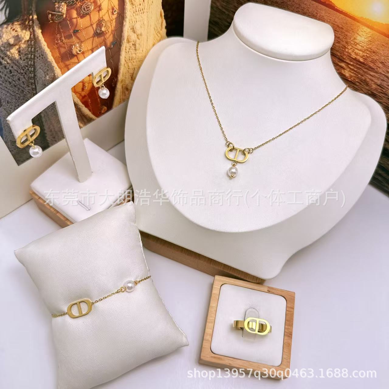 Light Luxury High-Quality Pearl Letter Cd Pearl Necklace for Women, Standard Pig Nose Clavicle Chain Set for Women, Manufacturer Jewelry