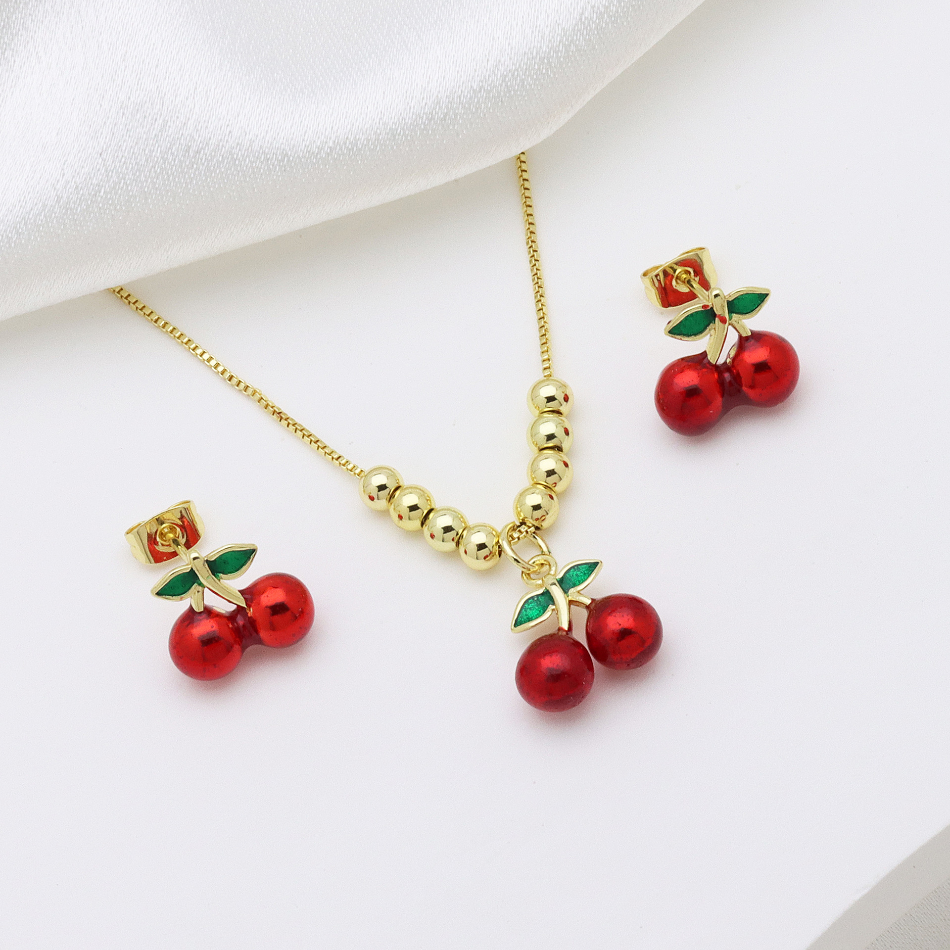 Amazon Cross-Border Best-Selling Colorful Oil-Dropping Fruit Series Cherry Strawberry Simple Fashion Earrings and Necklace Set