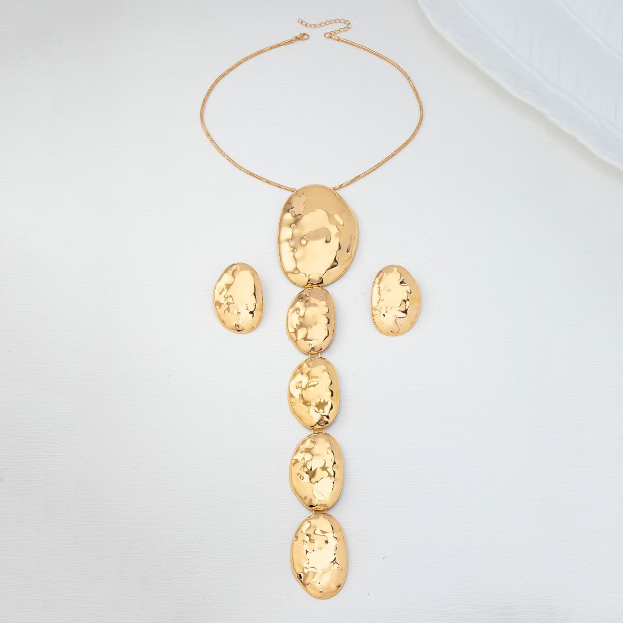 Gilt Irregular Hammer Pattern Long Necklace Gradient Oval Earrings Set Niche High-End Personalized Jewelry for Women