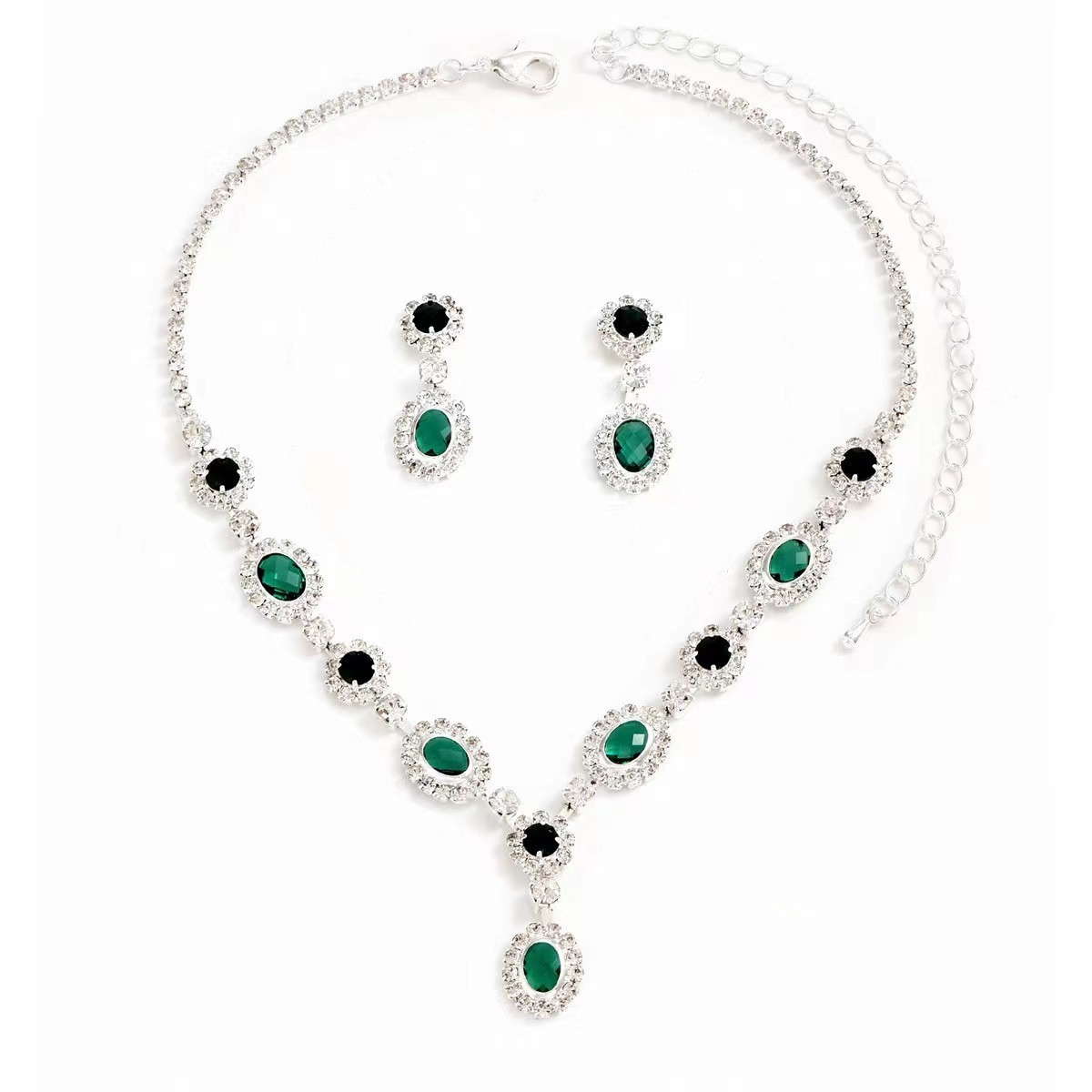 A set of European and American fashion simple shiny rhinestone necklace earrings bracelet suit luxury temperament necklace earrings four