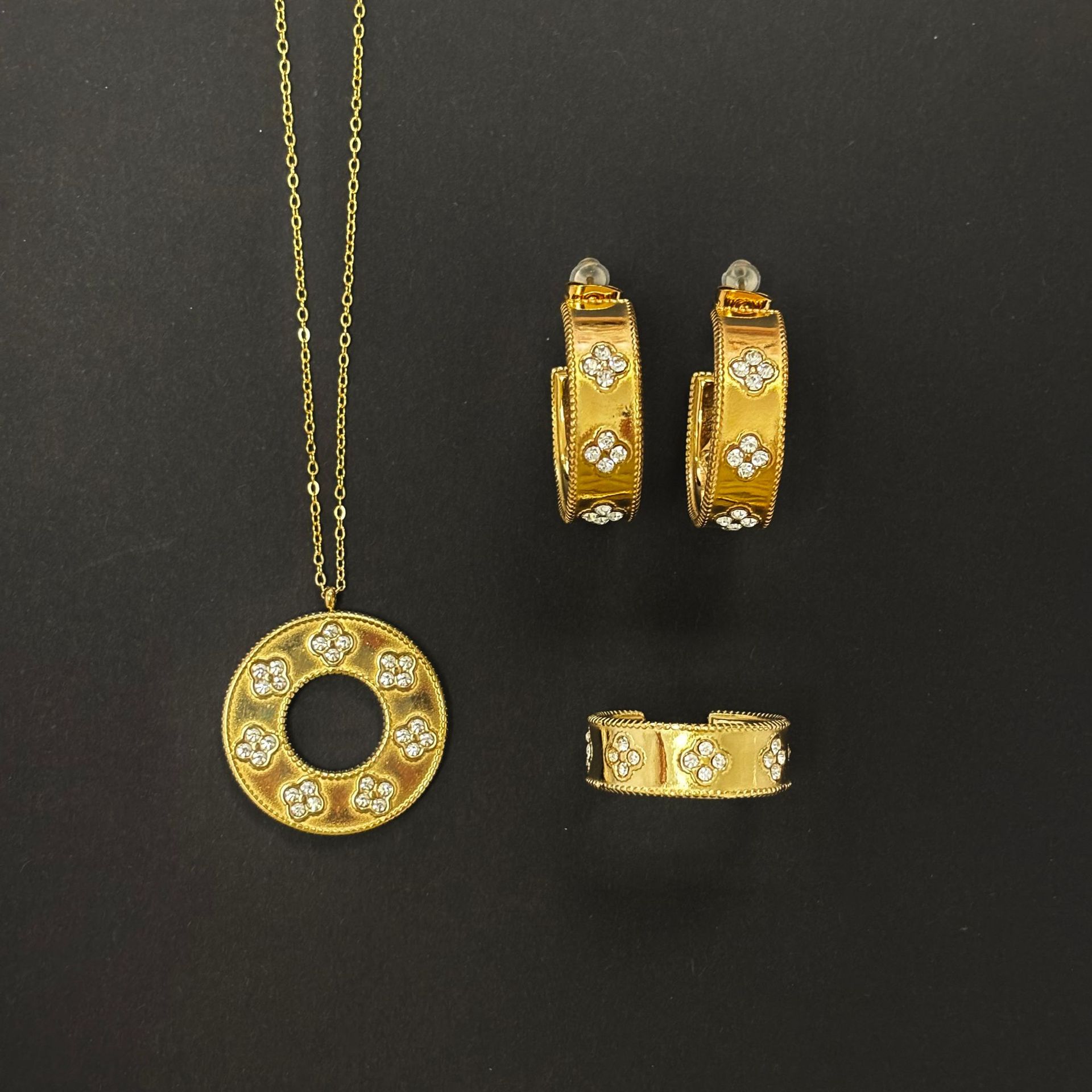 Titanium steel big brand four-leaf clover diamond necklace bracelet ring suit diamond foreign trade explosion four-leaf clover series waterproof