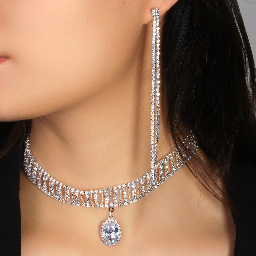 Cross-border Light Luxury Zircon Pendant Necklace Wedding Accessories Simple Tassel Earrings Jewelry suit Jewelry Set