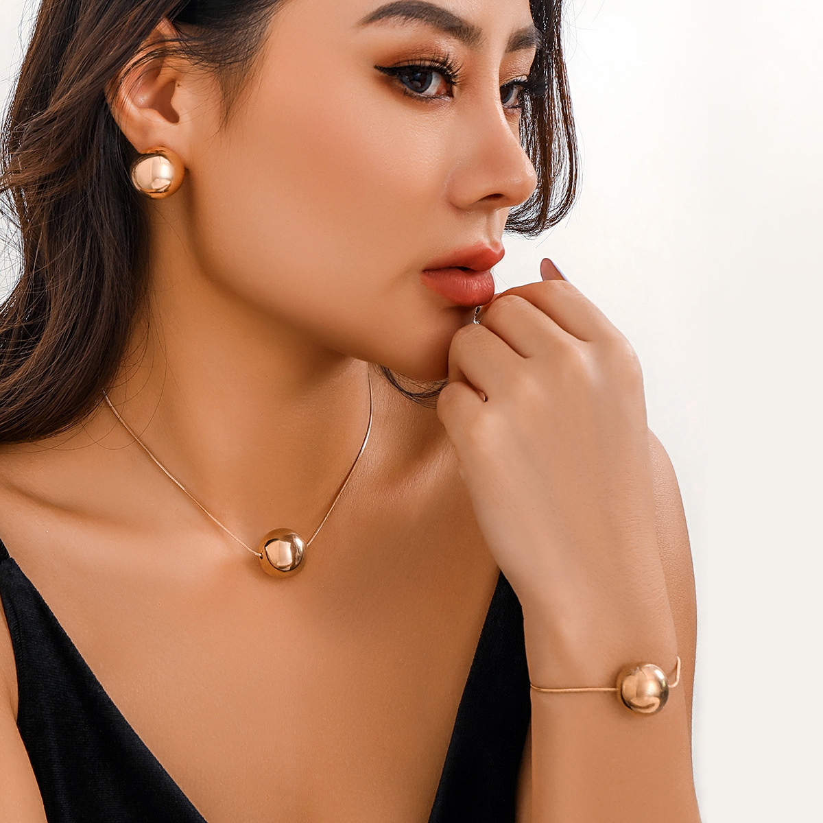 European and American cross-border jewelry punk snake bone chain clavicle necklace women's fashion simple geometric ball necklace suit