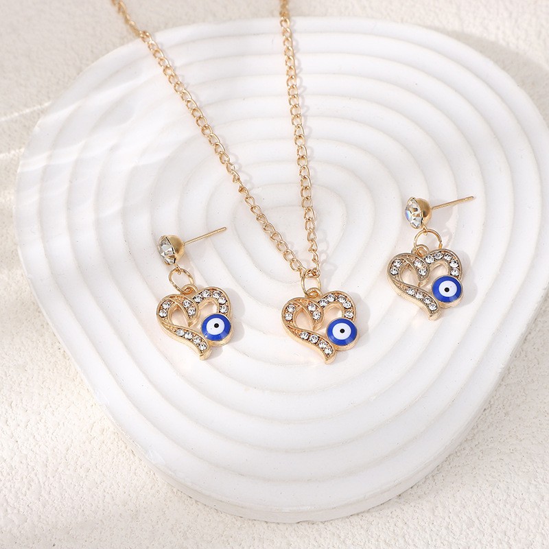 Devil's Eye Light Luxury Retro Love Shape Alloy Diamond Necklace Personalized Simple Earring Necklace Set Wholesale