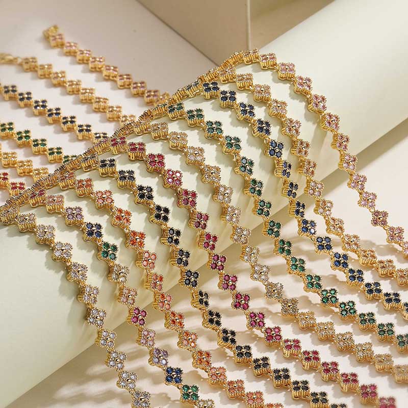 Light Luxury Copper Inlaid with Colored Diamonds Four-Leaf Clover Bracelet Necklace Niche High-End Super Flash Flower Petal Jewelry Set