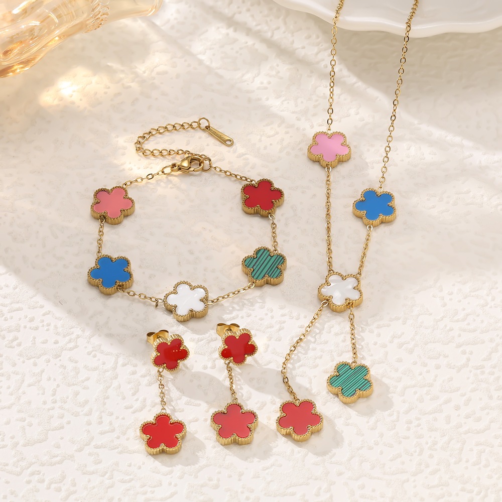 European and American Hot-Selling High-End Tassel Pendant Five-Leaf Flower Necklace Bracelet Earrings Set Women's 18K Gold Fashion Jewelry