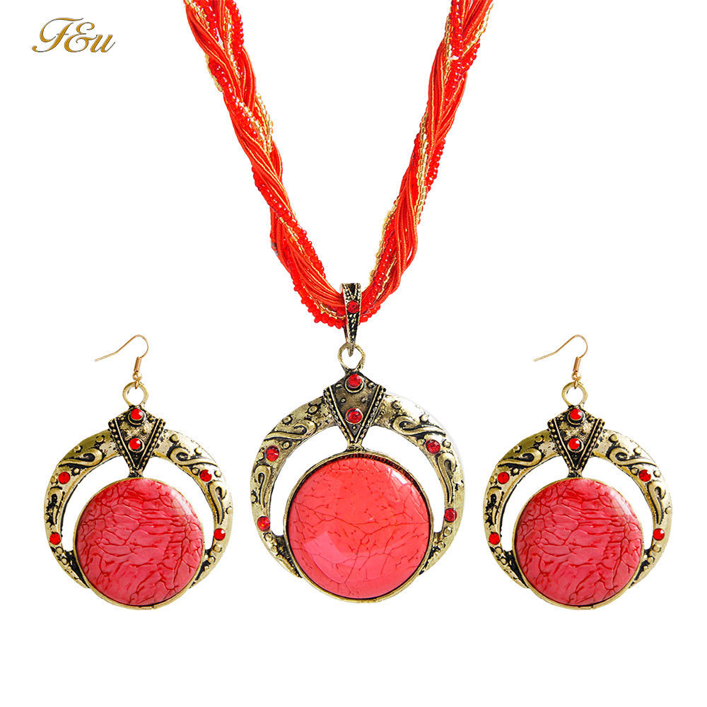 European and American Cross-border Fashion Color Amber Earrings Necklace suit Retro Exaggerated Oval Amber suit Crystal